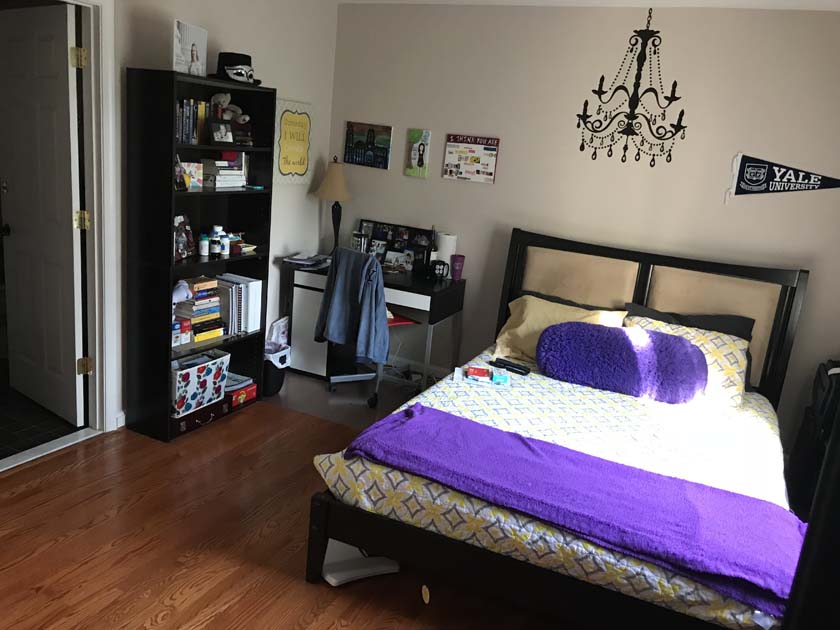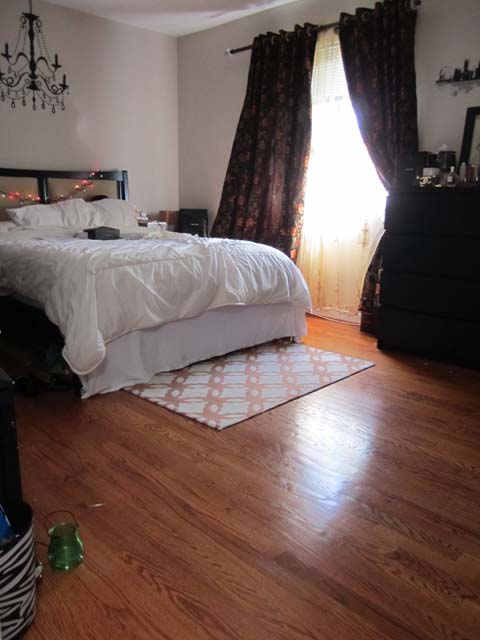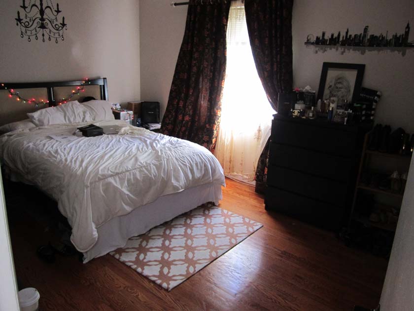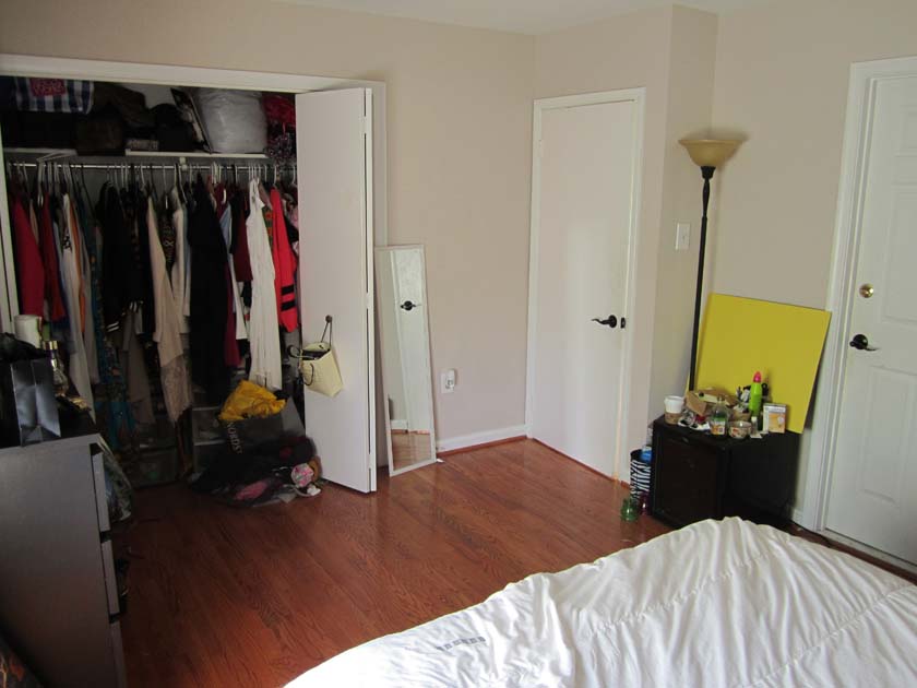 Large Room with Backyard View is one of the largest and brightest rooms in Crystal City House. The room has a large sized window facing South East, which brings a lot of Sunlight during the day. The room is 16X12 ft. large which is unusual to find in a house in downtown Crystal City. The room has hardwood floors, which were polished very recently. There is a full sized closet in the bedroom, which is 2ft wide and 8 ft. long. The room is attached to the master bathroom of the house, which has double sinks and modern tiles and fixtures. The resident of this room shares the master bathroom with the resident of master bedroom.