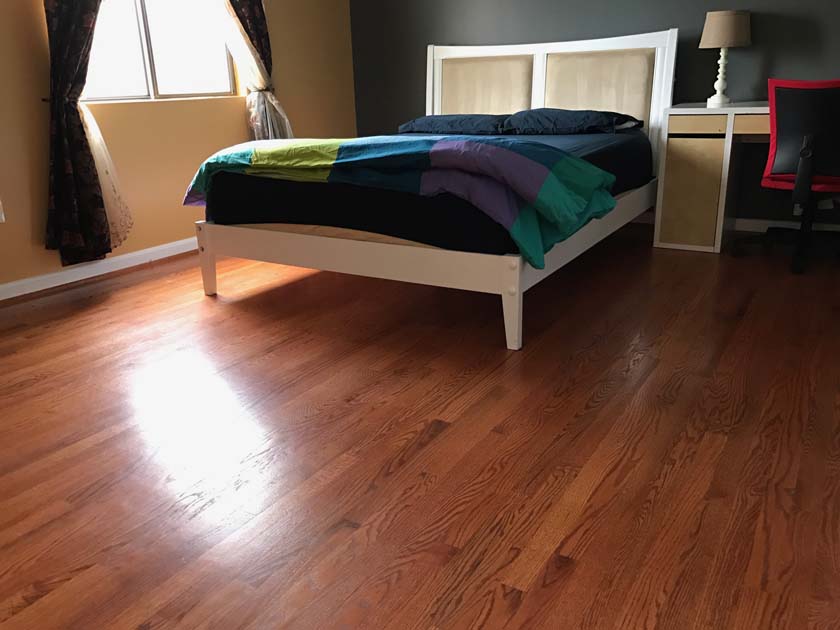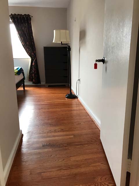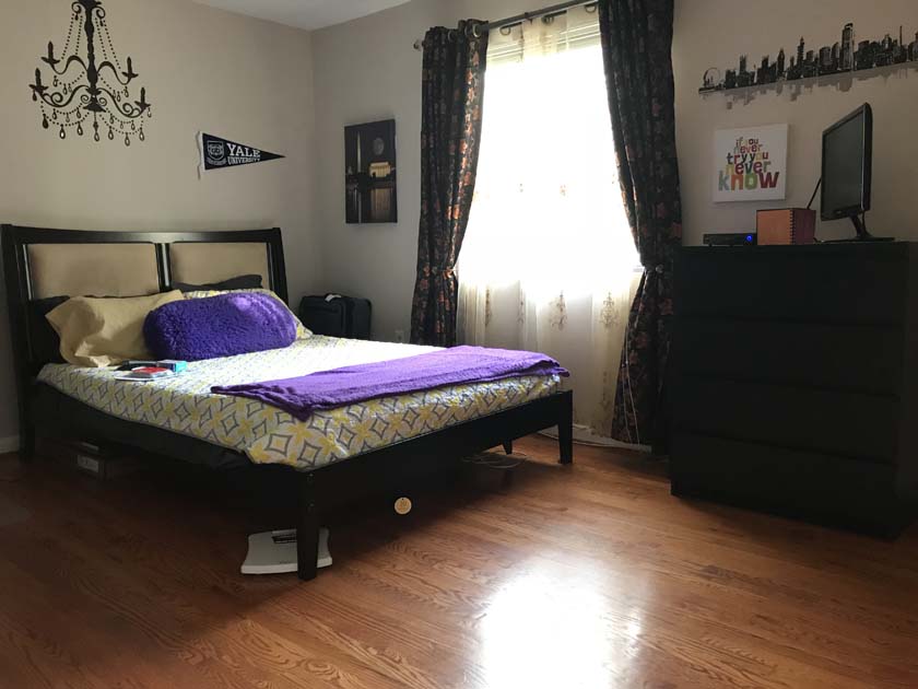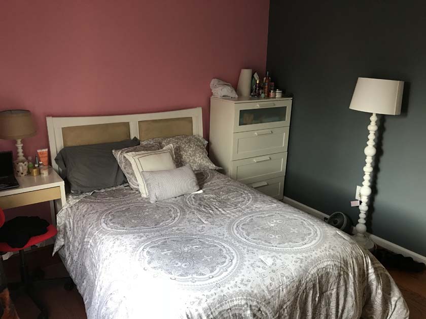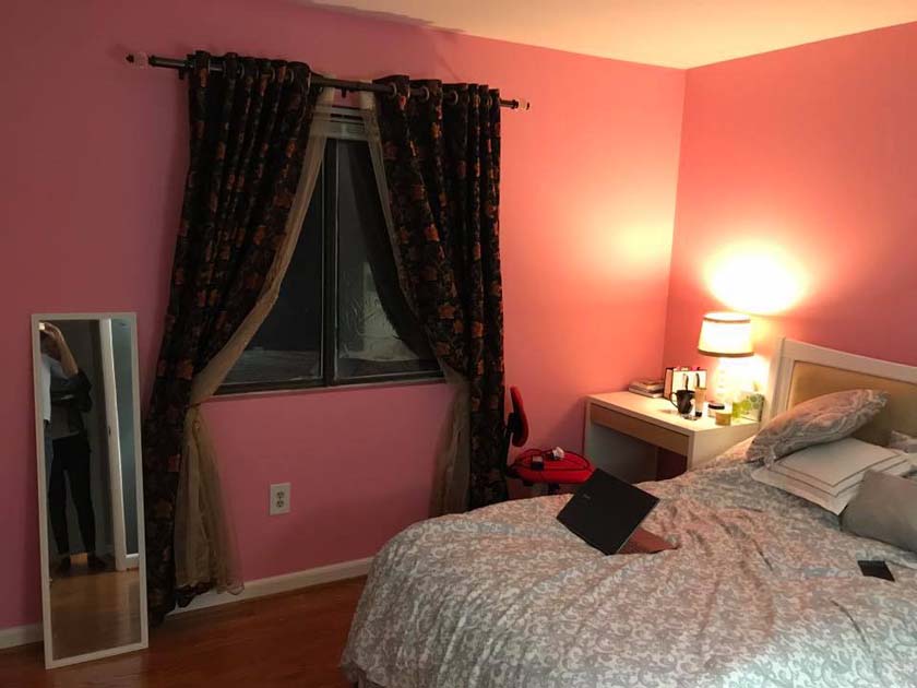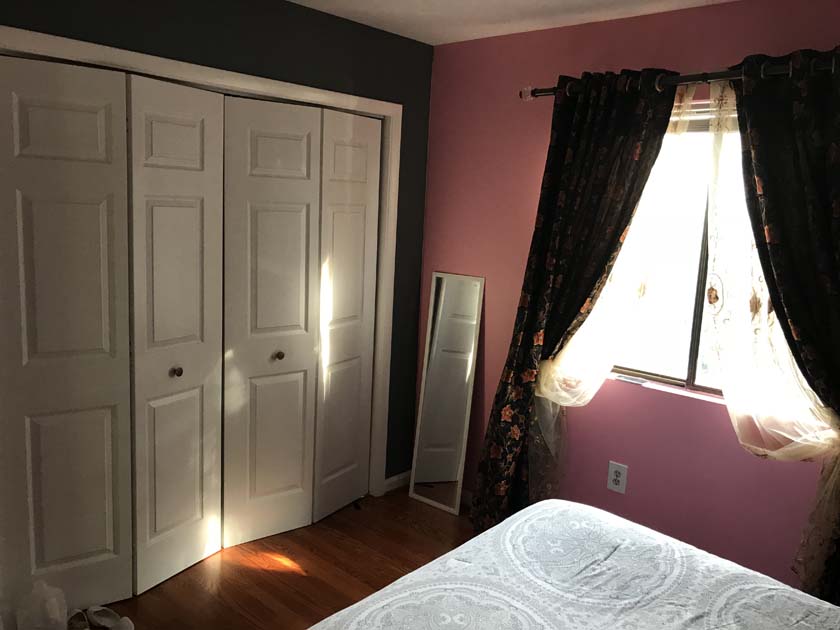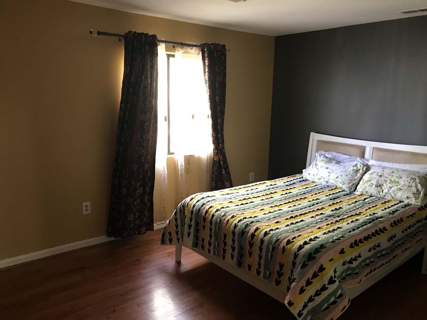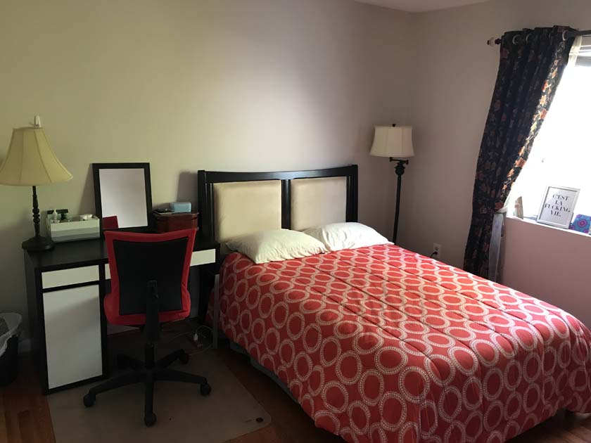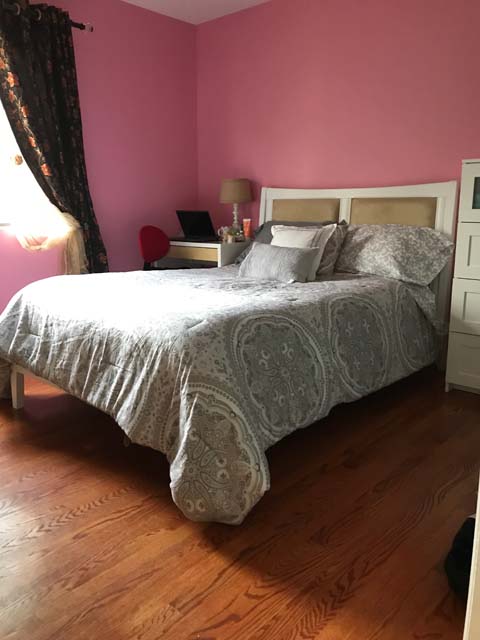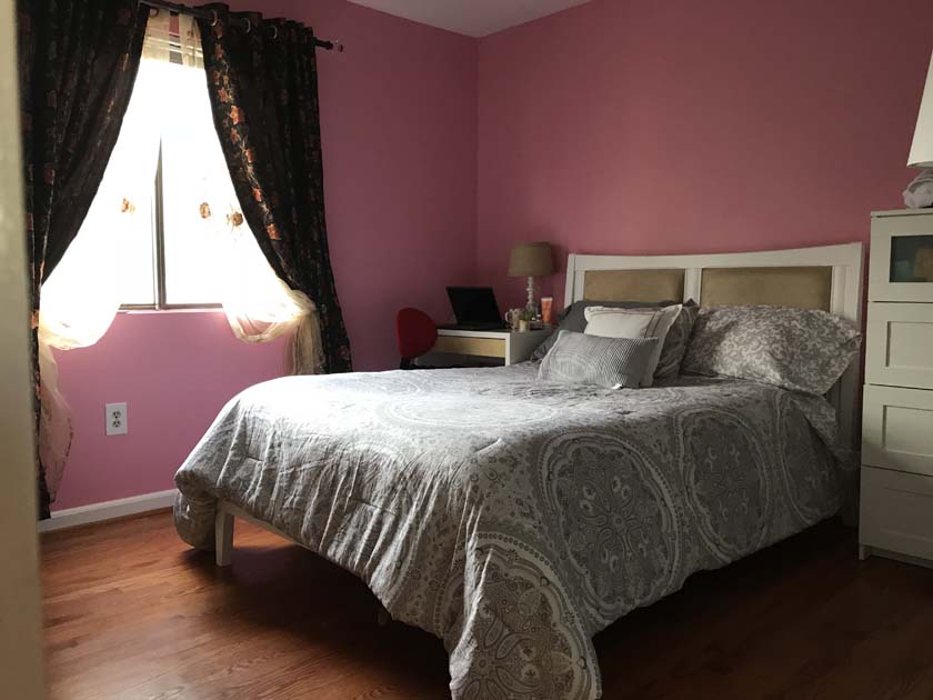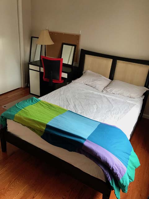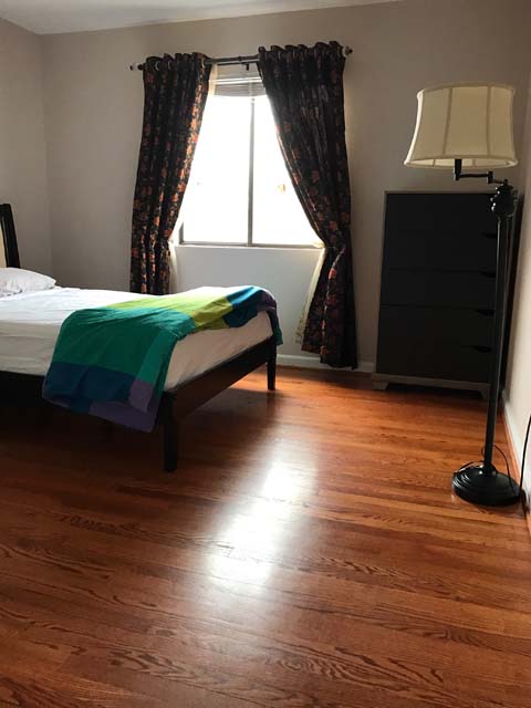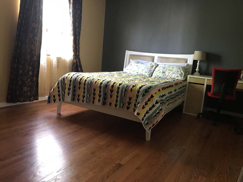 Mid-sized Room with Backyard View is one of the brightest rooms in Crystal City House. The room is Furnished and features an imported Italian white bed with a full size new Simmons Beauty Rest Mattress. The room has a large sized window facing South East, which brings a lot of Sunlight during the day. The room has hardwood floors, which were polished very recently. There is a full sized closet in the bedroom with modern style closet panel door, which is 2 ft. wide and 8 ft. long. The room is next to mid-sized bathroom, which has modern style sink, bathtub and upgraded appliances. The resident of this room shares the mid-sized bathroom with the resident of Mid-sized bedroom with Church and Park View.