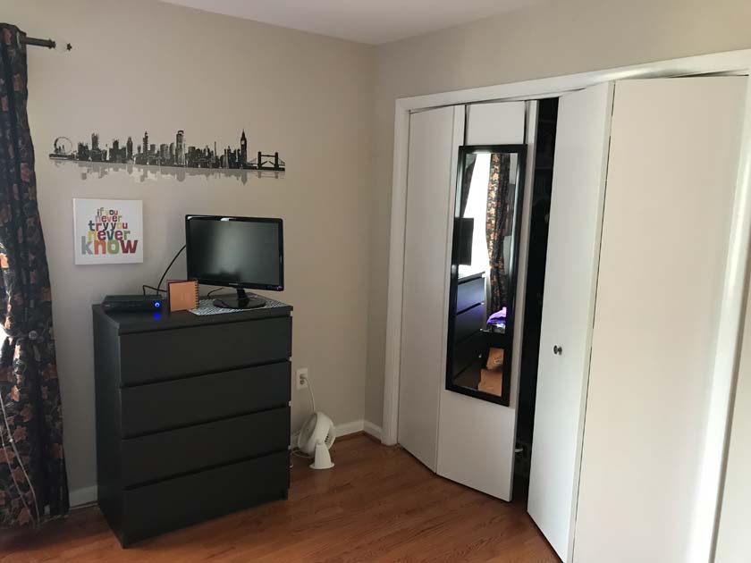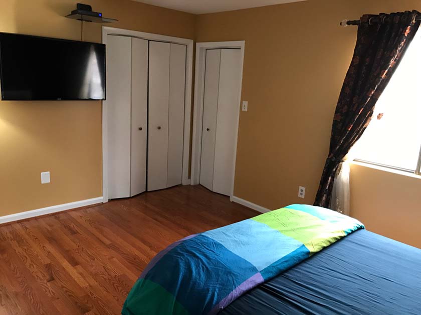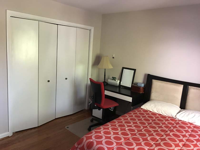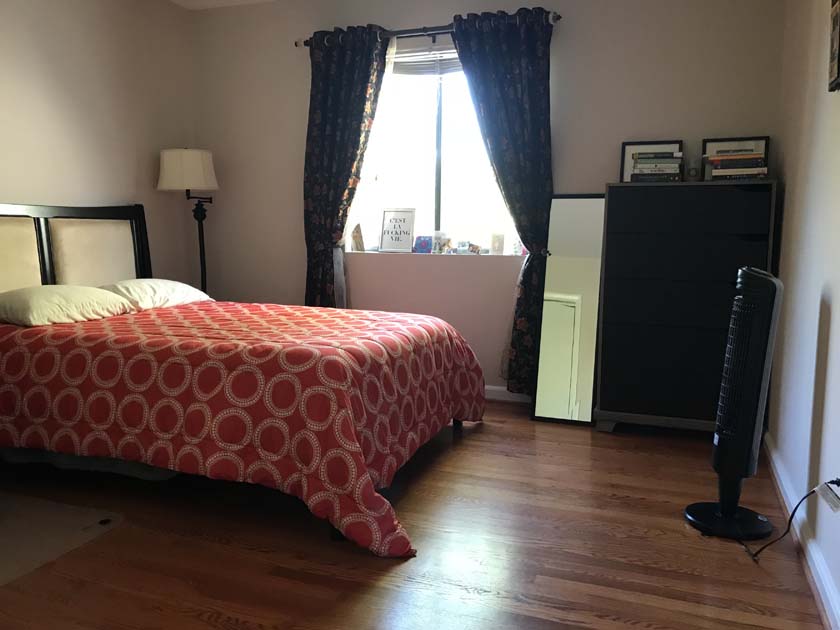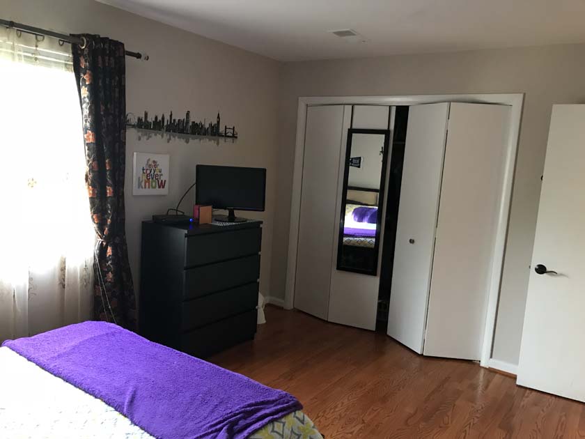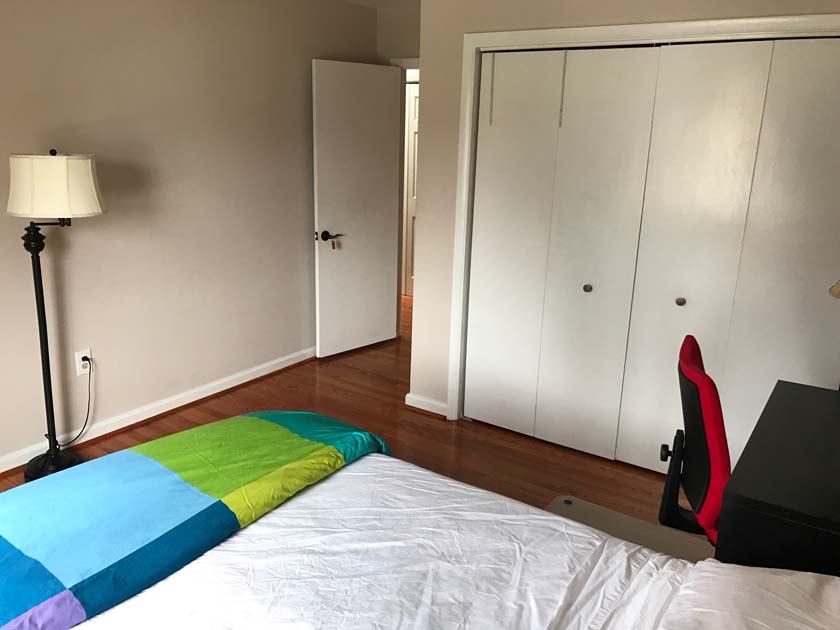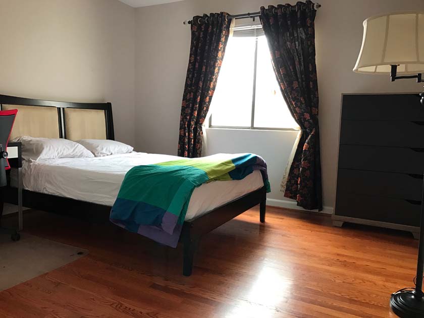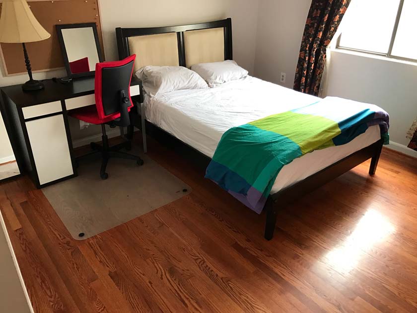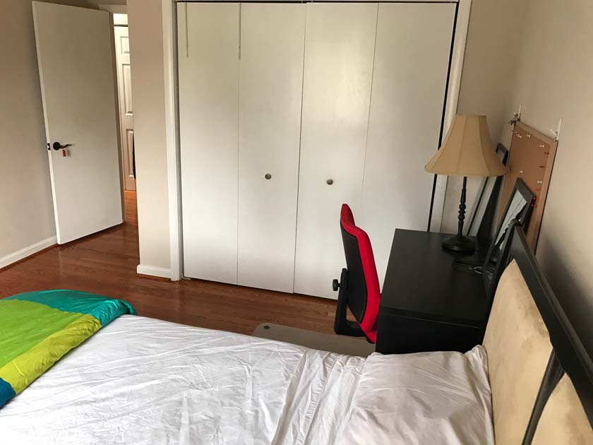 Mid-sized Room with Church & Park View is distinguished from other rooms because of its gorgeous view of a major Landmark blue tower of famous Church located in Crystal City. The room also has a view of Arlington County Park which adds life and value to your bedroom. The room has hardwood floors, which were polished very recently. There is a full sized closet in the bedroom with modern style closet panel door, which is 2 ft. wide and 8 ft. long. The room is next to mid-sized bathroom, which has modern style sink, bathtub and upgraded appliances. The resident of this room shares the mid-sized bathroom with the resident of Mid-sized bedroom with backyard View.