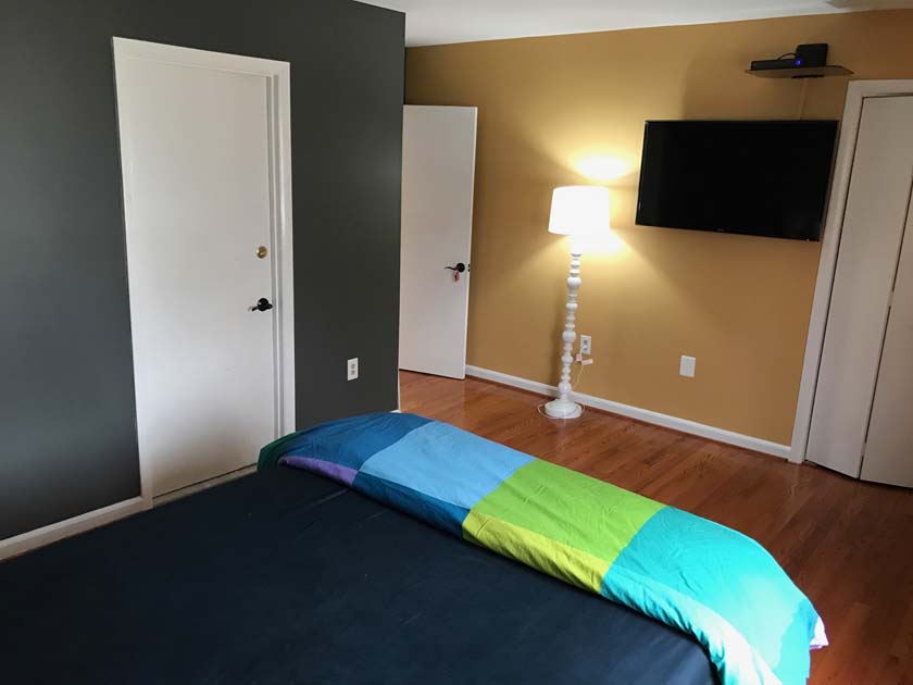 Master Bedroom is the largest and the most luxurious bedroom in Crystal City House. The size of the room is 16X14 ft., which is unusual to find in a house in downtown Crystal City. The room has hardwood floors, which were polished very recently. There are two walk in closets in the bedroom, which provides plenty of space for you to organize your clothes, shoes, and wardrobe. The room is attached to the master bathroom of the house, which has double sinks and modern tiles and fixtures. The resident of this room shares the master bathroom with the resident of Large bedroom with backyard view.