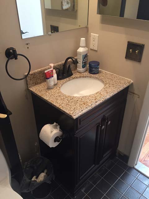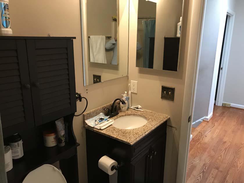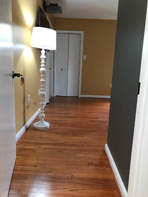 Bathroom: The room is located next to mid-sized bathroom at upper level.